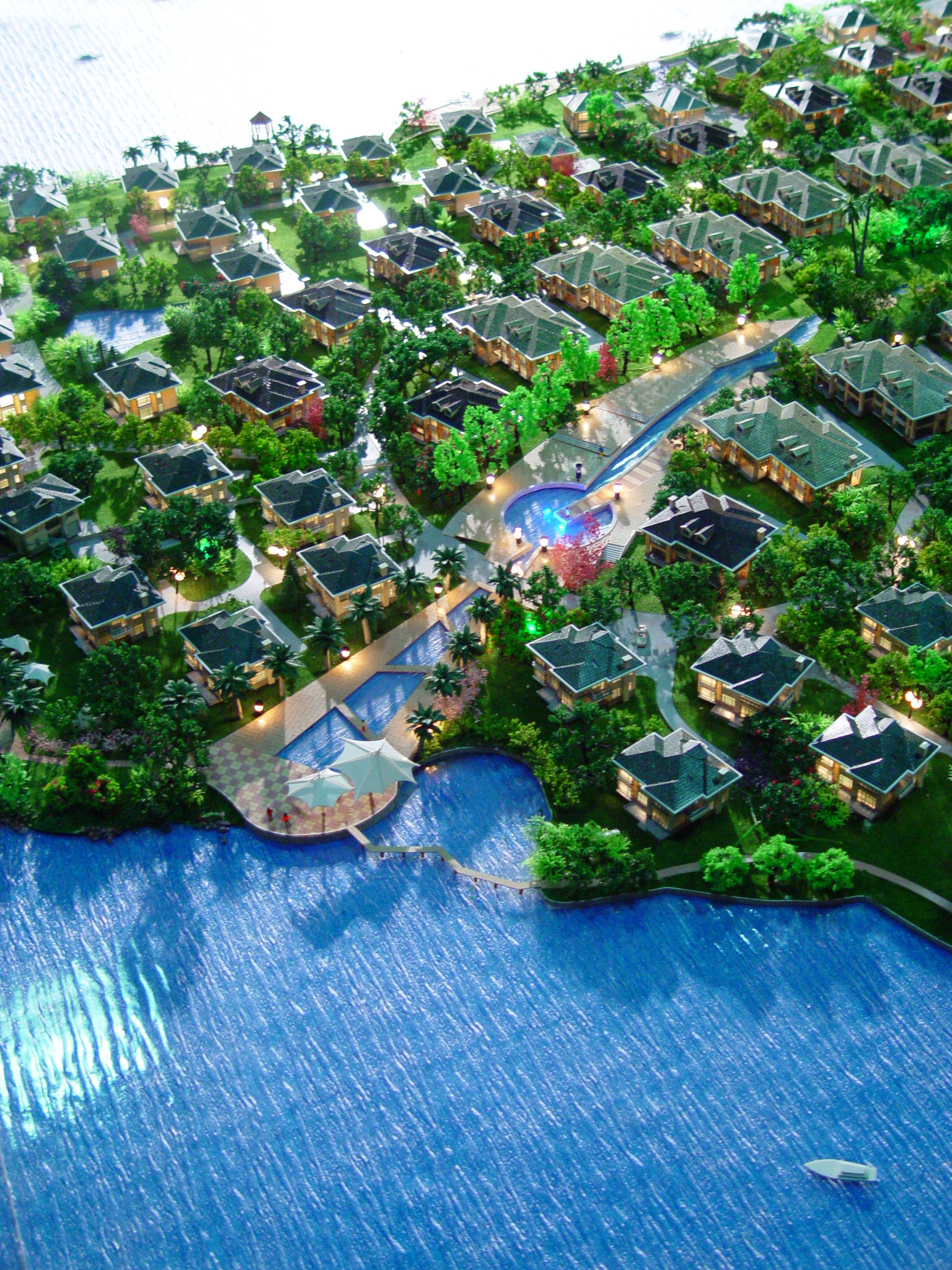如果能做到以上三點,一個優(yōu)美的花園式別墅建筑模型已出現(xiàn)雛形,剩下的就是局部的修飾與調(diào)整,應(yīng)多用小型花卉做點綴,注意色彩和形式上的統(tǒng)一。